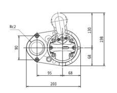 | Utloppsanslutning | Invändig gänga, fläns |